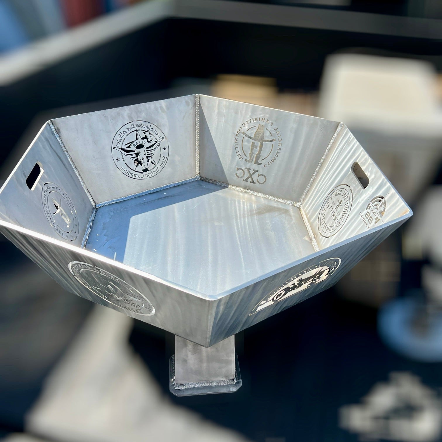Experience the pinnacle of craftsmanship with our custom welded aluminum fire pit....